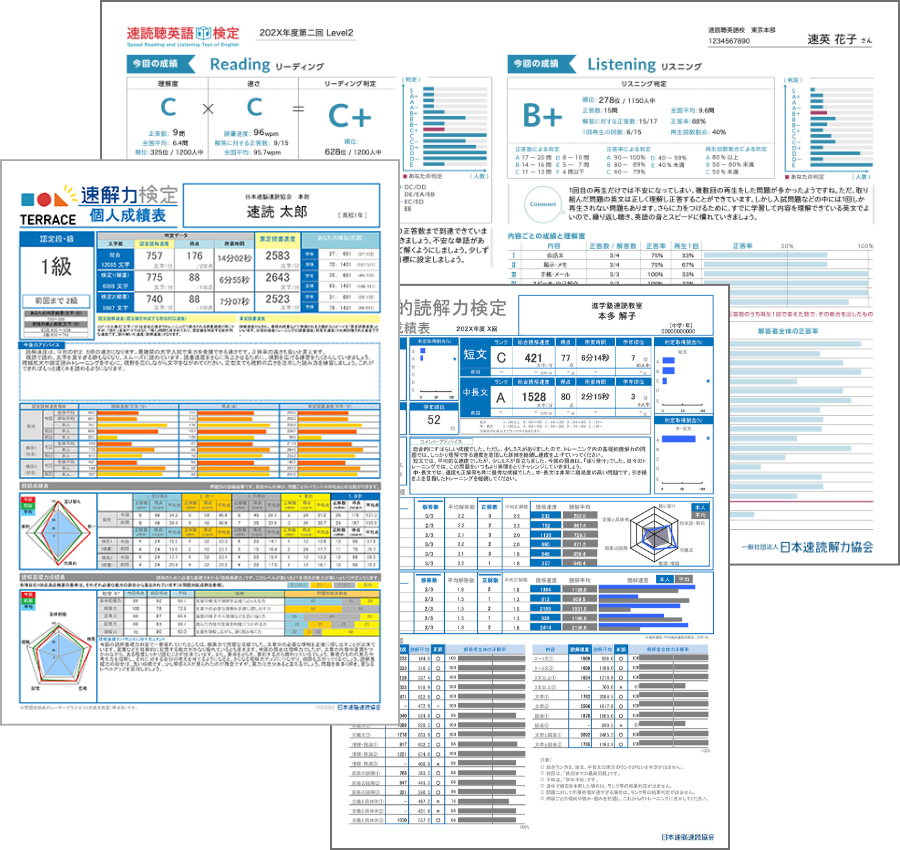 検定では成果を客観的に分析した個人成績表が発行。結果をもとに次回のトレーニングに活かすことができます。