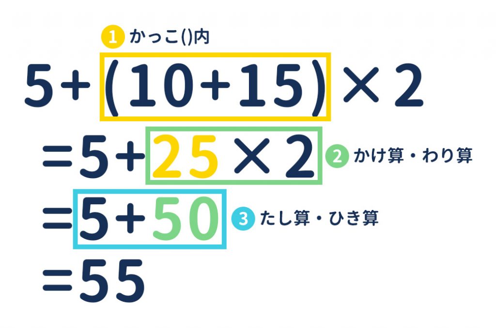 四則の順番に加え、カッコ内の計算の優先順位も覚える必要があります。